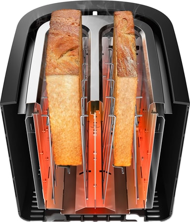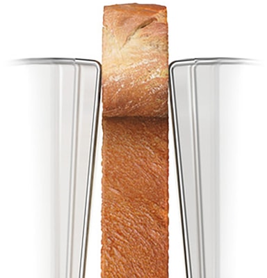 Brödrosten har extra breda öppningar för färska eller frysta brödskivor. Den innehåller också en avtagbar smulbricka och ett bullvärmningsställ för uppvärmning av bullar och croissanter.