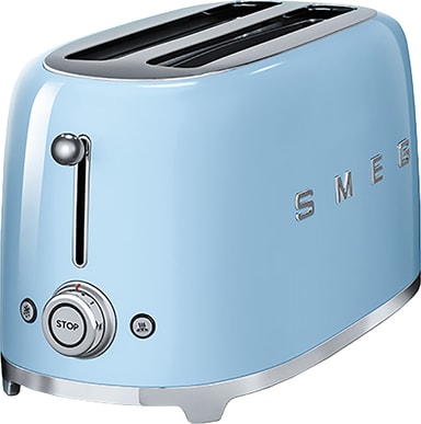 Det italienska märket Smeg är kända för sina hushållsvaror som kombinerar retrodesign med modern teknik. Brödrosten passar in både i 1950-tals inredning och som en kontrast till modern design.