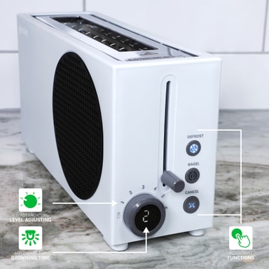 Denna brödrost kommer att fånga allas ögon. Formad som en Xbox Series S-konsol ser brödrosten inte bara cool ut, utan det rostade brödet kommer ut med Xbox-logotypen inbränd på den.