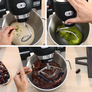 Det 3D planetariska blandningssystemet säkerställer perfekta resultat varje gång. Knådverktygen rör sig i tre riktningar och täcker varje del av skålen, vilket säkerställer att ingredienserna blandas jämnt. Detta eliminerar behovet av att skrapa ner sidorna och ger en jämn, konsekvent deg eller smet.