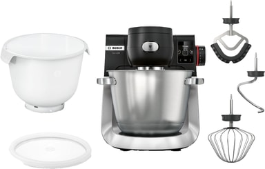 Bosch Series 6 köksmaskin levereras med ett patisserieset, inklusive en rostfri visp, knådkrok och silikonkantad omrörare för exakt blandning, knådning och vispning. Den inkluderar också en BPA-fri Flex-skål, perfekt för stora satser och lätt att rengöra.