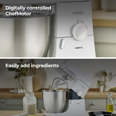 Kenwood-köksmaskin har en kraftfull 1200 Watt motor och 3 effektuttag som ger den stor mångsidighet och säkerställer att den klarar alla uppgifter från att göra lätta krämor till att knåda tung deg.
