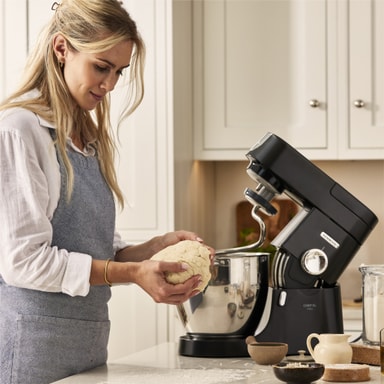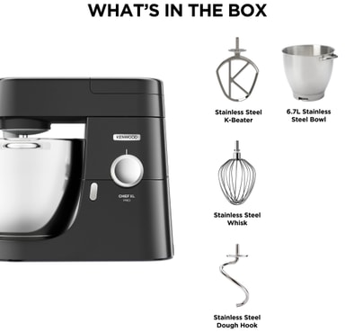 Köksassistenten Kenwood Chef XL Pro KVL88.003BK har en 1700 W motor, en rymlig 6,7 liters skål och en helmetallkonstruktion för att enkelt hantera tunga degar.Läs mer om produkten
