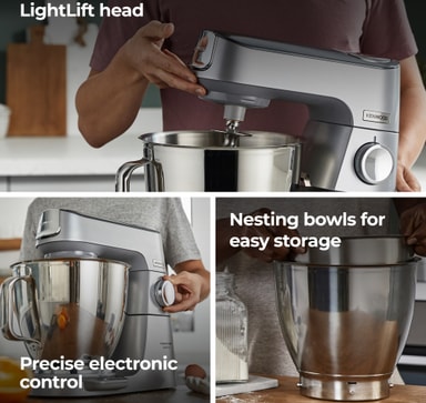 Ta din passion för bakning till nästa nivå med Kenwood Titanium Chef Baker XL köksmaskin KVL85.004SI. Du ordnar enkelt med kakdeg, bröd eller grädde -köksmaskinen blandar alla dina ingredienser med exceptionell hastighet.