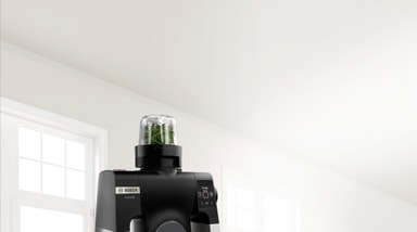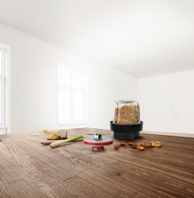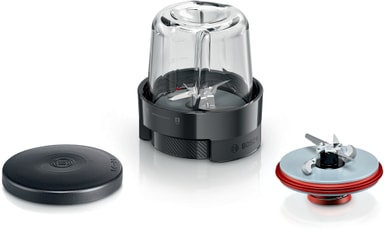 Bosch MUZS68CG matberedare hackar och maler med två knivar och robust glasbehållare. Enkel för daglig användning och rengöring. Kompakt, diskmaskinssäker, passar Bosch serie 6 och 8.Läs mer om produkten