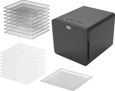 Raw dehydrator DH8 låter dig göra hälsosamma mellanmål till din familj. Med 8 brickor och en 0,7 m² torkyta ger den gott om utrymme för bulkberedning. Dess timer och justerbara temperaturintervall gör det bekvämt att torka frukt, örter, nötter och svamp hemma.