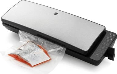 Den starka förseglingen garanterar att maten förblir nyttig, välsmakande och fräsch. Avlägsnandet av luft från påsen möjliggör även effektiv värmeöverföring vid Sous Vide-matlagning.