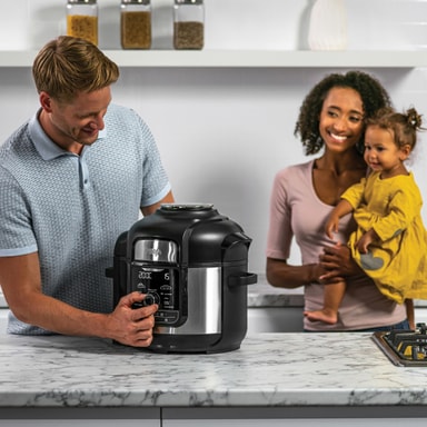 Välj ett av de nio tillgängliga alternativen för perfekt resultat - Press Cook, Air Crisp, Slow Cook, Steam, Sear / Sauté, Bake / Roast, Grill, Yoghurt eller Dehydrate.