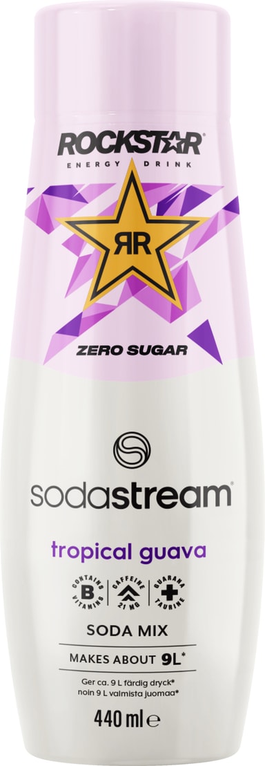 Energibringande och fruktiga SodaStream Rockstar Energy Guava Zero smak 1924221771 låter dig njuta av smaken från Rockstar guava-energidryck med hjälp av din SodaStream-maskin. Flaskan på 440 ml ger 9 l läcker sockerfri dryck.Läs mer om produkten