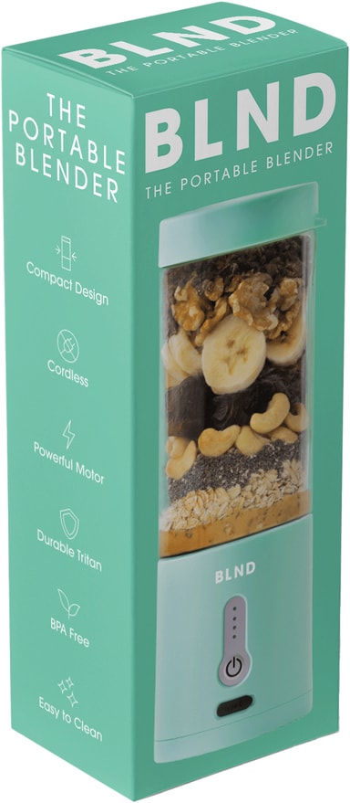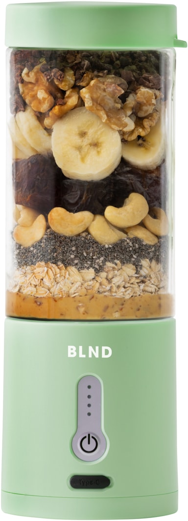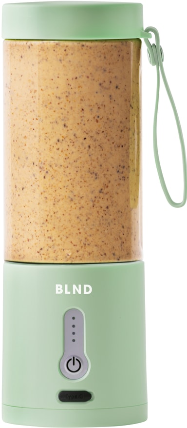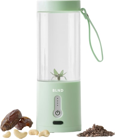 BLND blender MNT är idealisk för att göra smoothies och proteinshakes på språng. Dess 600 ml behållare, vassa blad och kraftfulla 120W DC-motor blandar frukt, grönsaker och nötter till en jämn blandning. Den har en vattentät laddningsport av typ C och ett förreglingssystem för att förhindra spill och säkerställa säker drift.