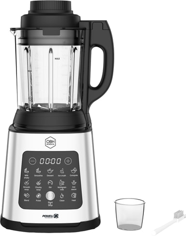 OBH Nordica blender LH835DS0 är utrustad med en kraftfull 1400W motor och 6 vassa Powelix-blad, vilket gör att den kan blanda även sega ingredienser och skapa en jämn konsistens för soppor och puréer. Den har 10 förinställda tillagningsprogram för både varma och kalla rätter. Den värmebeständiga glaskannan har en kapacitet på 1,75 liter för kalla råvaror och 1,4 liter för varma råvaror.