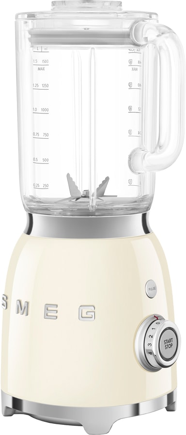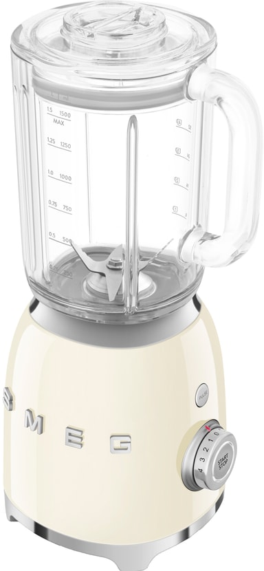 Smeg mixer BLF03CREU är en bra liten hjälpreda i köket. Den har 800 W effekt med vilken den kan göra smoothies, krossa is och pulsera igenom även de tuffaste livsmedel. Med 4 hastigheter och en kapacitet på 1,5 liter får du all flexibilitet du behöver. Och den BPA-fria kannan ser till att allt är trevligt och säkert.