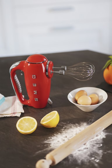 Vintagestil och modernitet kombineras hos Smeg 50's Style handmixer HMF01RDEU. Gör den perfekta degen, grädden, såsen eller allt annat tack vare den kraftfulla 250W-motorn, 9 hastigheteroch ett brett utbud av olika tillbehör.