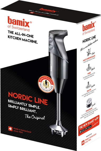 Schweizisk kvalitet och nordisk minimalism kombinerat. Bamix Nordic Line stavmixer BAM13355 hjälper dig mixa, blanda och krossa ingredienser. Den fungerar utmärkt på både våta och torra ingredienser och är enkel att rengöra.