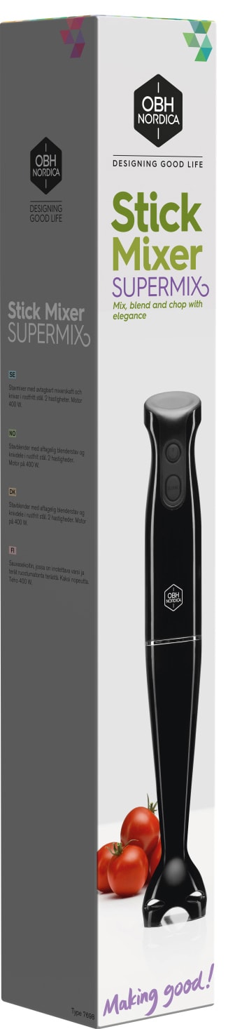 Fixa maten snabbt och med ett enda knapptryck tack vare OBH Nordica Super stavmixer OBH7698 som har en hastighetsinställning, turbo/pulsfunktion samt en 400 watts motor som snabbt förvandlar grönsaker till soppa och frukt till smoothie.