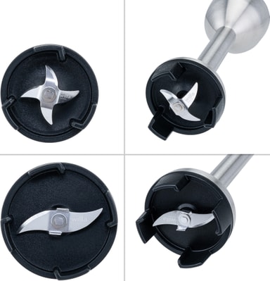 Alla avtagbara delar är diskmaskinsäkra för snabb rengöring. För optimal bladskötsel rekommenderas handtvätt för att bibehålla skärpa och livslängd.
