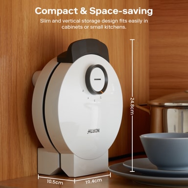En 19 cm keramikbelagd non-stick platta säkerställer enkel lossning och problemfri rengöring. Perfekt för att skapa felfria, gyllene våfflor utan att de fastnar.