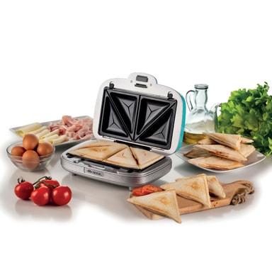 För en fest, ett mellanmål eller en speciell dag, med den nya Smörgåsar & Cookies Party Time elektriska tallriken kan du förbereda ett bord fullt av godhet! Läckra muffins, oemotståndliga munkar och fyllda mackor. En enkel och snabb produkt att använda med 3 non-stick och utbytbara tallrikar. Ha kul i köket och skapa massor av gott!