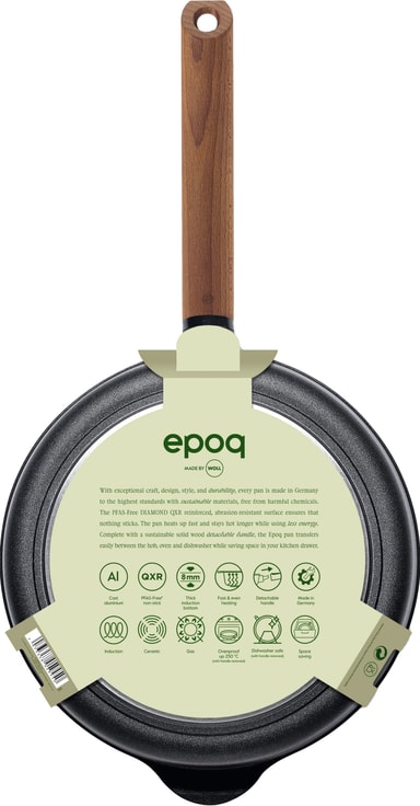 Epoq by Woll stekpanna - 24cm har en PFAS-fri beläggning och en skrovlig yta som ger den perfekta stekningen. Denna panna är tillverkad av gjuten aluminium, har ett avtagbart trähandtag och tål även maskindisk.Läs mer om produkten