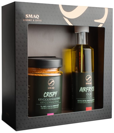 SMAQ olje- och kryddgåvobox 8004 innehåller en örtkryddblandning och en olivoljespray, perfekt för att tillföra smak till kött, fisk och grönsaker med mindre kladd och spill.Läs mer om produkten
