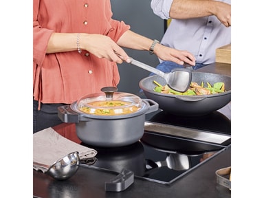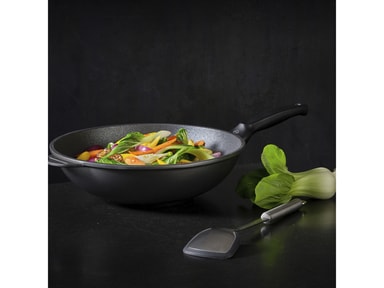 RÖSLE wok-palett. Den varken skadar eller repar ytbelagda kokkärl. Tål temperaturer på upp till 260 °C. Tål maskindisk. (R10637)