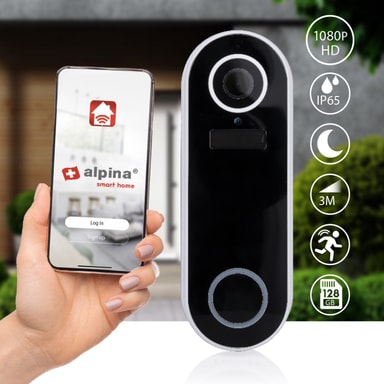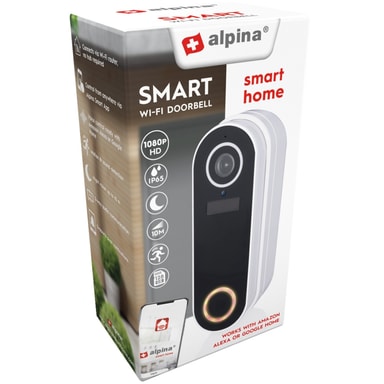 Tack vare denna smarta dörrklocka med kamera kan du se vem som står vid din ytterdörr genom Alpinas app i din smartphone. Så även om du är på arbetet, semester eller i soffan så kan du ha koll!