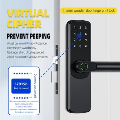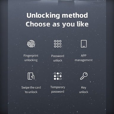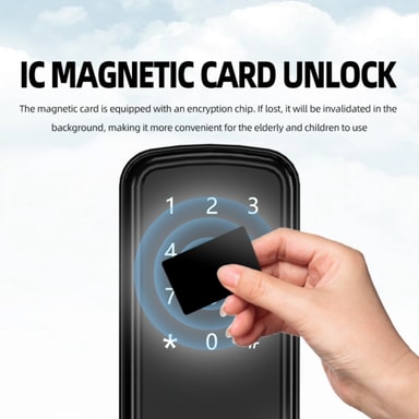 Flera åtkomstmetoder: Detta smarta dörrlås erbjuder mångsidiga åtkomstalternativ, inklusive APP-styrning, lösenordsinmatning, kortdragning och traditionell nyckelåtkomst. Detta säkerställer bekväm åtkomst för olika användare och situationer. APP-anslutningen möjliggör fjärrupplåsning och hantering, vilket ger ökad säkerhet och kontroll över din hem- eller kontorsåtkomst. Perfekt för familjer, hyresfastigheter eller företag som behöver flexibla åtkomstlösningar. Integrationen av flera metoder säkerställer att du aldrig blir utelåst, även om du glömmer din nyckel eller ditt lösenord. Detta smarta lås är kompatibelt med olika dörrtyper och erbjuder en sömlös blandning av säkerhet och bekvämlighet.