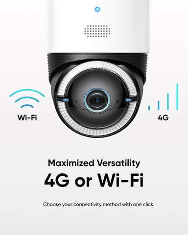 Den här kameran stöder både 4G LTE- och Wi-Fi-anslutningar, vilket gör att du kan välja det alternativ som passar dina behov bäst. Det medföljande SIM-kortet väljer automatiskt det mest stabila nätverket från de största leverantörerna i Europa, vilket garanterar oavbruten övervakning.