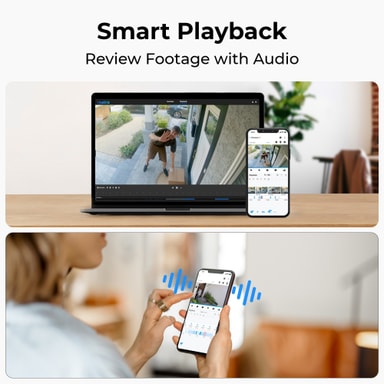 Avancerad detekteringsteknik minskar markant antalet falsklarm genom att exakt identifiera rörelser från människor, fordon och djur och skickar precisa varningar. Du kan granska dina lagrade inspelningar med ljud tack vare smart uppspelningsfunktion.