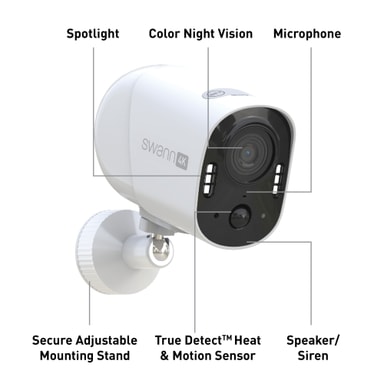 Denna Swann Xtreem4K säkerhetskamera levererar skarp 4K Ultra HD-video dag och natt med färgseende. Den har TrueDetect+, tvåvägskommunikation, en högljudd siren och starka sensorlampor tillsammans med upp till 120 dagars batteritid.Läs mer om produkten