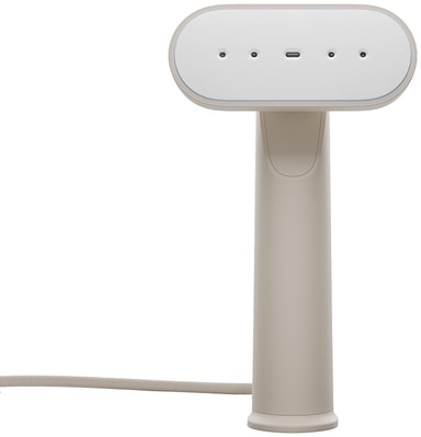 Den kompakta enheten har en elegant, minimalistisk design med intuitiva knappar för enkel användning. Det roterbara huvudet är perfekt även för svåra plagg, och den kan stå upprätt eller läggas platt för bekväm förvaring.