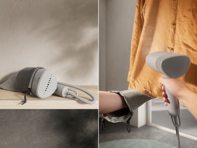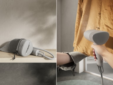 Den 1200-watts Electrolux Care 500 handhållen ånggenerator E5HS1-6UG värms upp på 30 sekunder och levererar 20 g/min ånga för att ta bort rynkor. Dess Glissium 10-sula säkerställer borttagning av veck utan att skada dina kläder.Läs mer om produkten