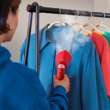 Den handhållna steamern tar snabbt bort rynkor och fräschar upp skjortor och klänningar. Den värms upp på 35 sekunder, vilket gör den perfekt för touch-ups i sista minuten.