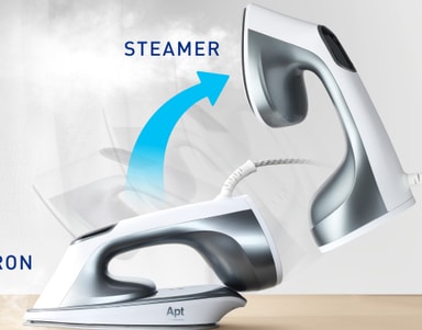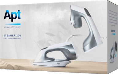 Apt Steamer 2 in1 handhållen Steamer och strykjärn är utformad för både vertikal och horisontell användning. Med en keramisk stryksula, ergonomiskt handtag och 200 ml vattentank ger den jämn ångning/strykning på alla tyger.Läs mer om produkten