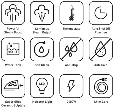 Tack vare värmeelementet på 2400 watt når strykjärnet optimal temperatur på bara 40 sekunder, perfekt för snabba uppfräschningar i sista minuten.