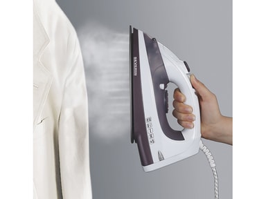 Nu är det slut med skrynkliga skjortor och klänningar. Detta ångstrykjärn kan användas både för ångstrykning och torrstrykning. Den inbyggda ångfunktionen gör det enkelt att släta ut envisa veck i dina kläder. 2500 W. BA 3210 Strykjärnet har en keramisk stryksula med nonstickbeläggning, ett praktiskt gummerat handtag med säkert grepp och en vattenbehållare som rymmer upp till 330 ml. Dessutom finns det en vattennivåindikator som gör det enkelt att se hur mycket vatten det finns kvar i behållaren. Strykjärnet ger ångpuffar på upp till 70 g/min och har en konstant ångeffekt på upp till 30 g/min. Med den praktiska droppskyddsfunktionen undviker du vattenstänk på dina kläder. Indikatorlampa som visar när strykjärnet är klart att använda, samt steglös temperaturkontroll som gör strykjärnet lätt att använda. Strykjärnet har dessutom automatisk avstängningsfunktion, ett självrengörande program och avkalkningssystem som förhindrar kalkavlagringar. Vit/lila.
