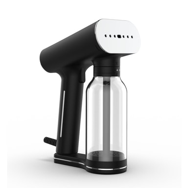 Karl XL2 är en innovativ klädsteamer handsteamer med en uppvärmd keramisk sula för både horisontell  ångning eller strykning. Steama plaggen upphängda på galgen eller pressa kläderna liggande - du får alltså en steamer och strykjärn i ett!Maskinen har en triggerknapp för att styra ångan, antidroppsystem i munstycket och en utformining som leder ångan in i textilierna. Som tillägg för en steamer får du även ett strykresultat då den keramiska ångmunstycket också fungerar som ett strykjärn. Perfekt för att forma och släta ditt plagg extra. Du får även en extra stor vattentank utan att steamern blir klumpig. 400 ml som ger ca 25 minuterseffektiv steaming! Räcker till många plagg eller riktigt långa gardiner.