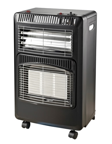 Sammanfällbar gasolkamin med slang och svensk regulator Passar G30 butanol-/propanolflaskor på upp till 11 kg Gastryck: 30 mbar Med 3 st infraröda värmeelement, inbyggd elektrisk värmefläkt, elektronisk tändning och tippskydd 3 värmesteg vid gasdrift: 1,5/2,8/4,2 kW Gasförbrukning: 110/200/305 g/timme Passar rum med en storlek från 20–80 m2 Med hjul Färg: Svartlackerad med kromgaller Certifieringar: CE/KIWA