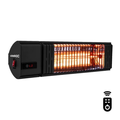 Vi alla gillar att sitta ute på kvällen så fort kvällarna blir längre. Tyvärr svalnar det ofta av rejält och man går snabbt inomhus igen. Men med den här värmaren från VONROC kan du njuta av behagliga temperaturer även under de kallare dagarna och kvällarna. Volsini värmaren på 2000W är en terrassvärmare med en lampa av typen "golden amber low glare". Den här lampan avger mindre ljus än andra lampor men den garanterar en enorm värmeeffekt och en lång livslängd. Värmaren levereras med en fjärrkontroll. Du använder fjärrkontrollen för att slå på och stänga av värmaren. Du kan även ställa in värmenivåerna och timern med kontrollen. Genom LCD-skärmen på värmaren kan du enkelt läsa av den valda värmenivån och det antal timmar du ställt in timern.