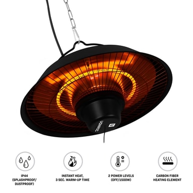 VONROC Ustica är en elegant och effektiv hängande infravärmare som ger direkt värme på bara 3 sekunder. Med sin kraftfulla 1500W kolfiberlampa skapar den en varm och mysig atmosfär på altanen, under pergolan, i uterummet eller på den inglasade balkongen. Tack vare IP44-klassningen är den damm- och stänkskyddad, vilket gör den idealisk för skyddade utomhusmiljöer.