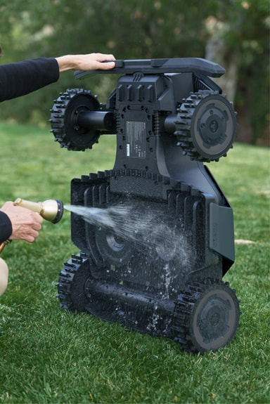 Säkerhetsfunktioner inkluderar ett lyftlarm som aktiveras om gräsklipparen lyfts upp, PIN-kodsskydd för att förhindra obehörig användning och Find My-spårning för att hjälpa till att lokalisera gräsklipparen om den flyttas.
