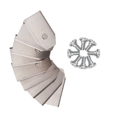 Byt ut dina slöa gräsklipparblad och klipp gräset effektivt utan att skada stråna med dessa extra knivblad. Bladen är tillverkade av högkvalitativt rostfritt stål, vilket garanterar lång hållbarhet och en skarp klippning varje gång. Denna förpackning innehåller nio blad och tillhörande skruvar, vilket gör installationen snabb och enkel.