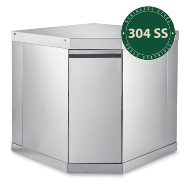 Fristående hörnmodul med förvaringsskåp i 90 grader. I exklusiv och stilren finish, helt tillverkad i rostfritt stål - 304 av bästa kvalité. Drömmen om grannskapets maffigaste utekök kan enkelt förverkligas genom att bygga in en hörnmodul. Med denna stabila hörnmodul kan uteköket byggas i en 90°C vinkel, det ger en fantastisk öppen och rymlig yta för matlagning utomhus. Perfekt passform för ett hörn på din altan eller uteplats.