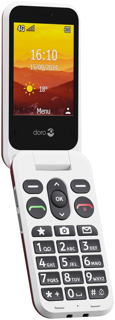 Doro Leva L31-mobiltelefon är designad med användarvänlighet i åtanke och erbjuder alla viktiga funktioner för att hålla dig uppkopplad med dina nära och kära. Fliptelefonen har en 2,8-tums inre display och en yttre display för nummerpresentation. De väl placerade tangenterna hjälper till att skriva enkelt, medan ClearSound-tekniken säkerställer konversationer av hög kvalitet varje gång. Dessutom kommer telefonen med en hjälpknapp, som varnar de fem mest pålitliga kontakterna med din plats.