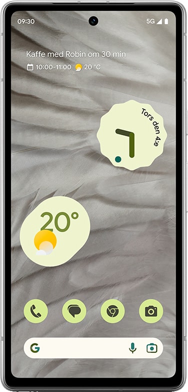 Det här är Pixel 7a, byggd av Google. Med Google Tensor G2-chipet blir den snabb och batteriet räcker hela dagen. Med Pixel kameran tar du fantastiska foton och videor. VPN från Google One skyddar din data. Funktionerna i Pixel 7a är förstklassiga inom säkerhet. Till ett lägre pris.