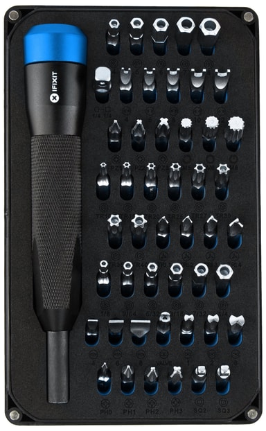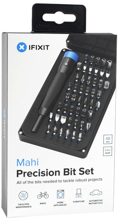 iFixit Mahi 48-bit precision skruvbitskit innehåller 48 olika bits för alla dina reparationsprojekt. I satsen medföljer handtag som gör arbetet lättare. Detta kit passar arbete med datorer eller andra elektroniska reparationsarbeten.