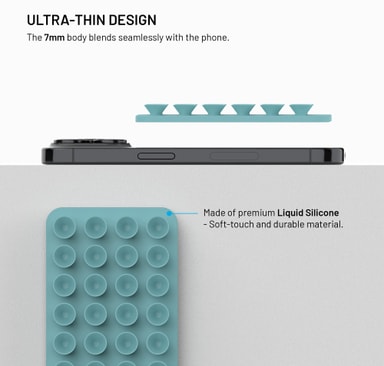 Ultratunna Fixed MagMate sugkoppshållare är en enkel handsfree-lösning för din telefon. Byggd för iPhone 12 och nyare, fästs den säkert med hjälp av starka MagSafe-magneter och stannar på plats på släta ytor med en robust sugbas. Fäst den på speglar, kakel eller glas medan du filmar, följer ett recept eller gör dig redo. MagMate-hållaren är tillverkad av mjuk, hållbar silikon som är lätt att rengöra.