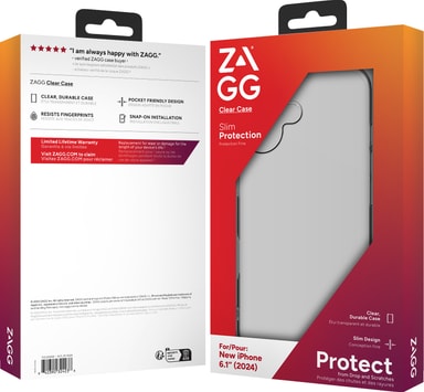 Håll din telefon skyddad mot fall och stötar med hjälp av Zagg iPhone 16 genomskinligt fodral. Det har åtsittande passform och slimmad design med förstärkta kanter, medan den transparenta designen bibehåller telefonens utseende.