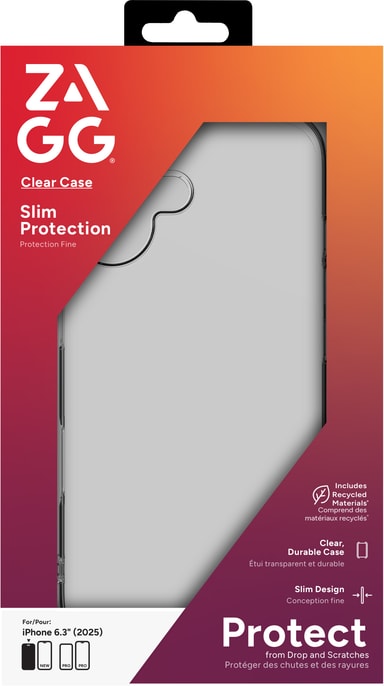 ZAGG Clear Case för iPhone 17 erbjuder tåligt, transparent skydd med flexibelt TPU-material, enkel påklickning, slimmad design, förstärkta kanter och kompatibilitet med trådlös laddning.Läs mer om produkten
