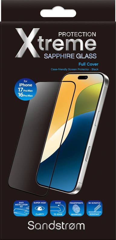 • Sandstrøm Sapphire skärmskydd för iPhone 17 Pro Max